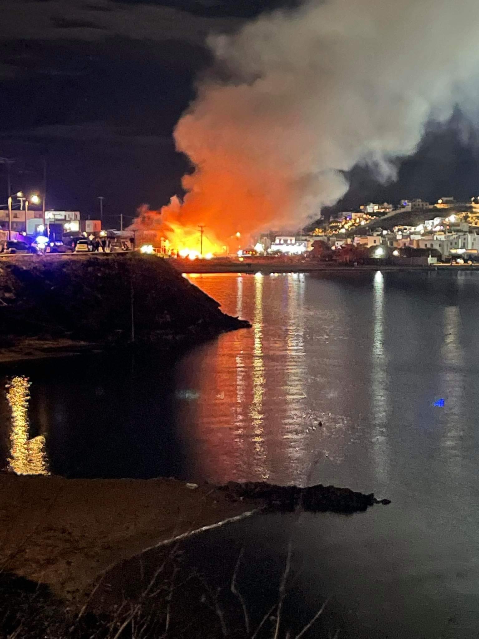Η φωτιά ξεκίνησε από κατάστημα στην περιοχή Φάμπρικα της Μυκόνου και επεκτάθηκε σε δύο διαμερίσματα.