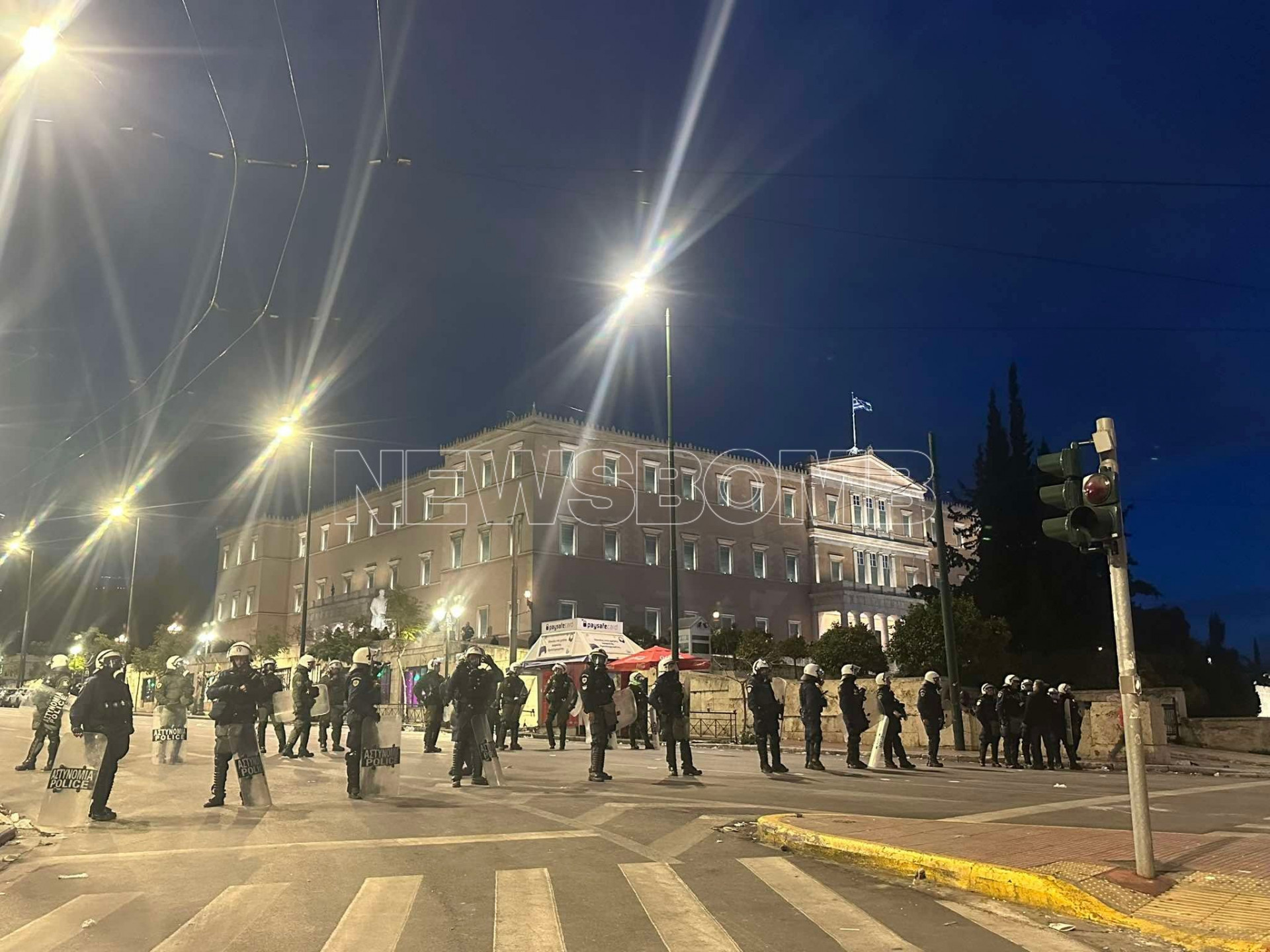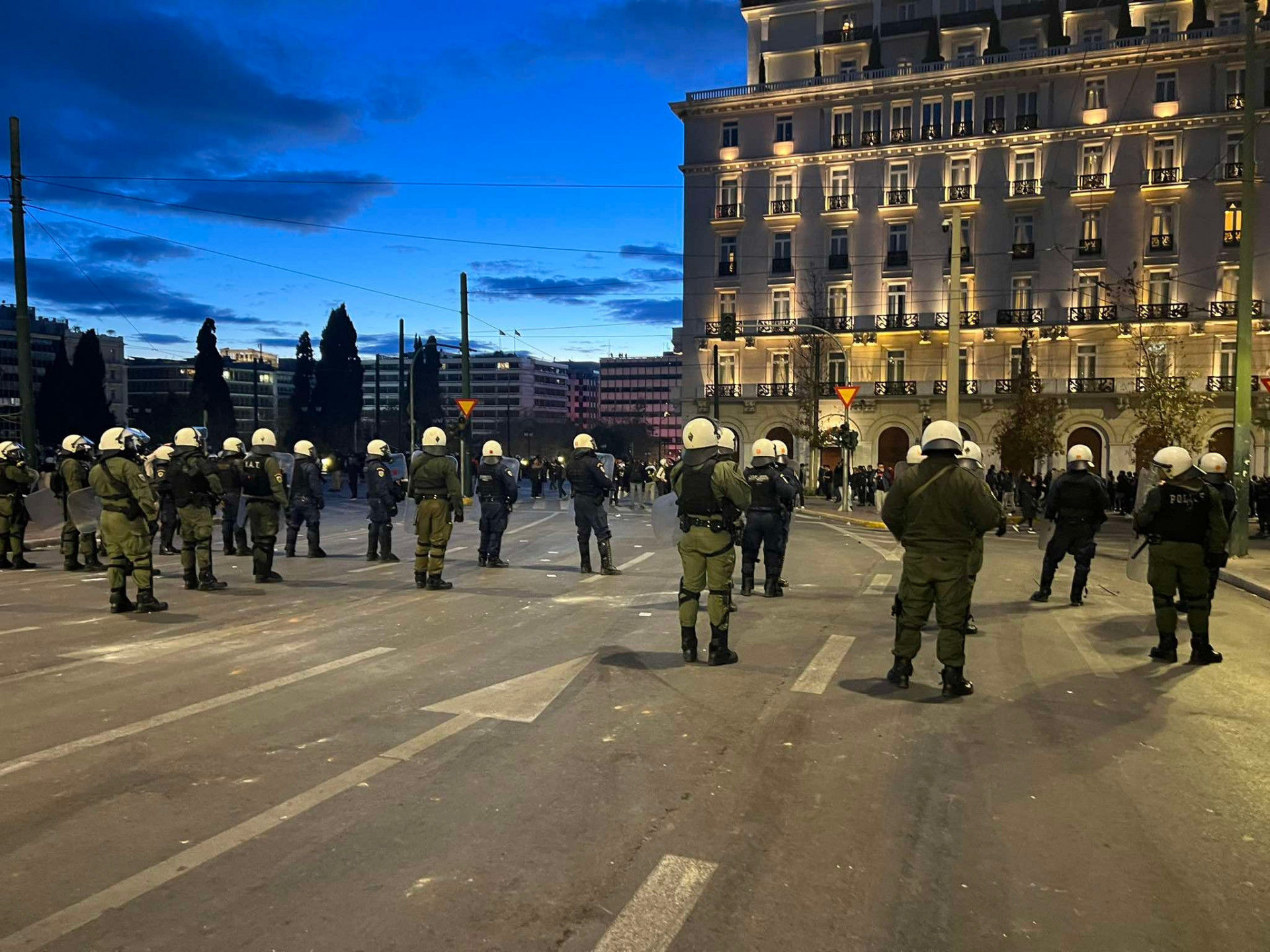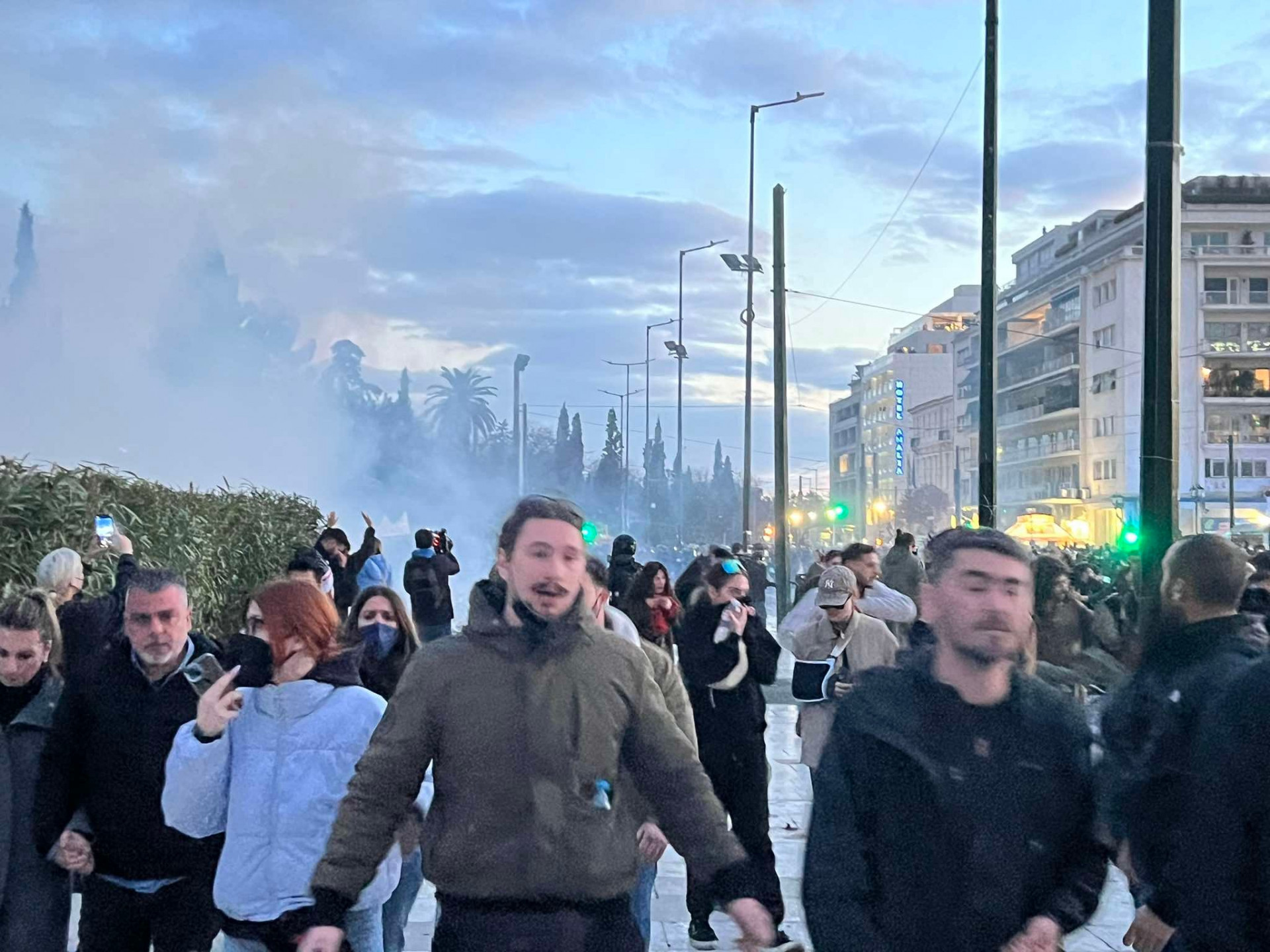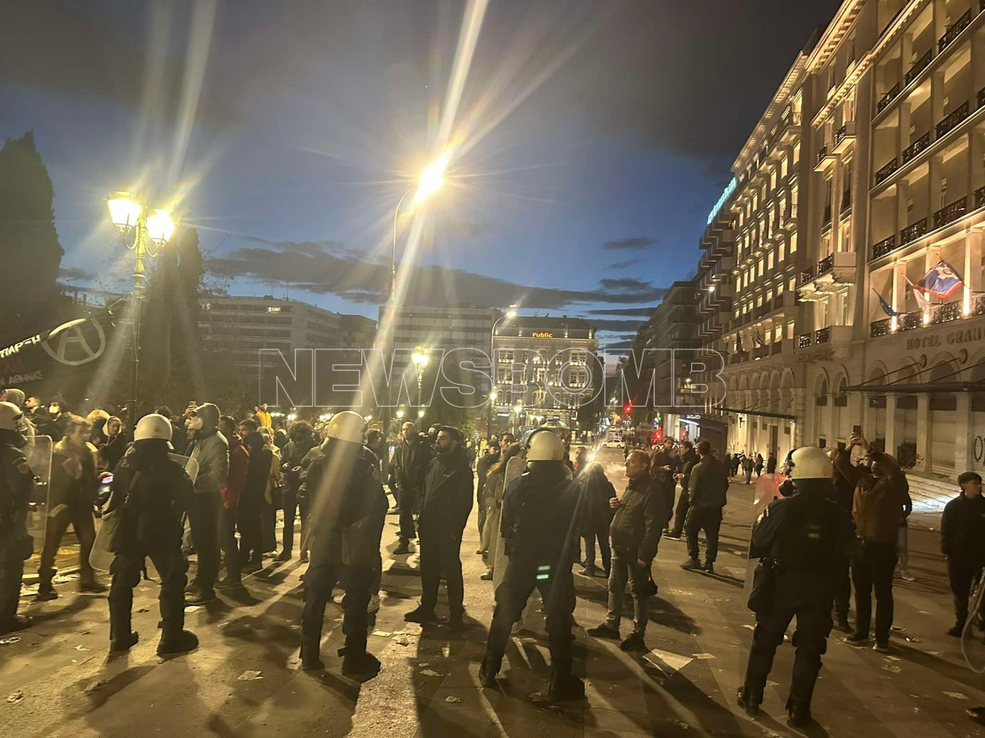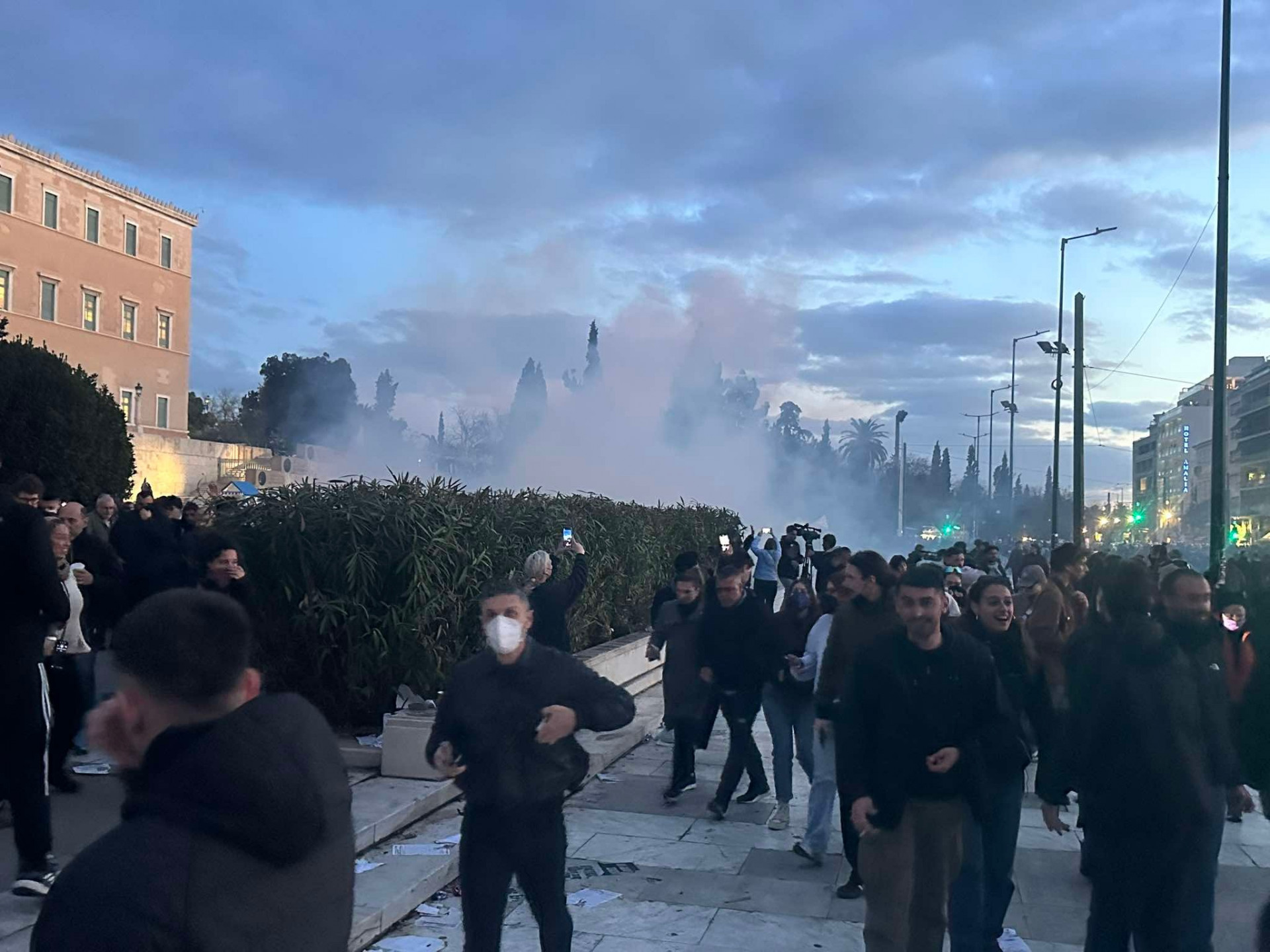 Λίγο αργότερα, η ένταση αποκλιμακώθηκε σε μια συντονισμένη ενέργεια δεκάδων αστυνομικών των ματ αλλά και της ομάδας Δίας ,και με τη χρήση χημικών να απομακρύνουν το πλήθος από την πλατεία Συντάγματος με την πλειοψηφία των διαδηλωτών να υποχωρεί προς τα Προπύλαια από την Πανεπιστημίου.