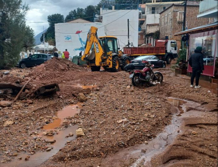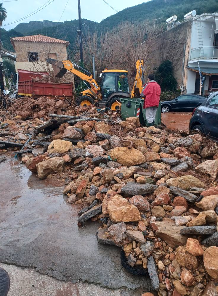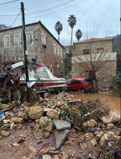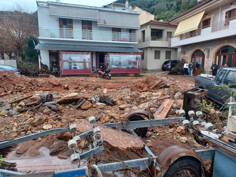 Όπως αναφέρει μάλιστα και η τοπική ιστοσελίδα messinialive, «ο ορμητικός χείμαρρος συμπαρέσυρε στο πέρασμά του αυτοκίνητα, μηχανές, τρέιλερ, σκάφη και βάρκες, ακόμα και μάντρες ξήλωσε», ενώ είναι τεράστιο το πρόβλημα με τα φερτά υλικά, τεράστιες πέτρες που στο πέρασμά τους μπήκαν μέσα σε σπίτια και παραλιακά καταστήματα.