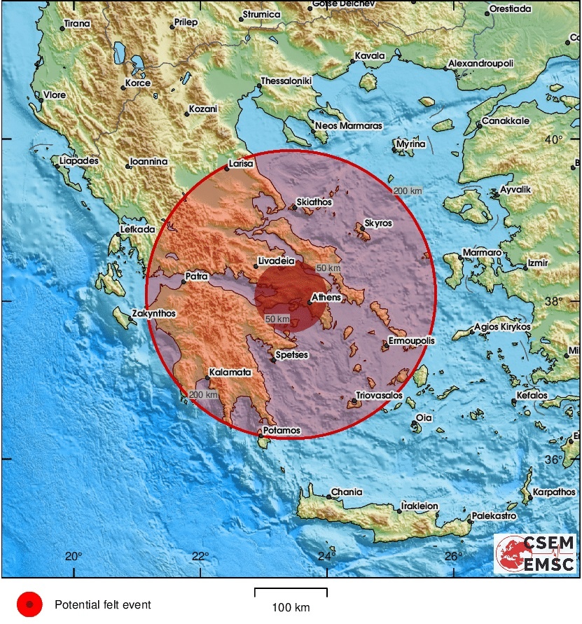 Δείτε στον παρακάτω χάρτη του Ευρωμεσογειακού Σεισμολογικού Κέντρου, τις περιοχές που έγινε αισθητός ο σεισμός: