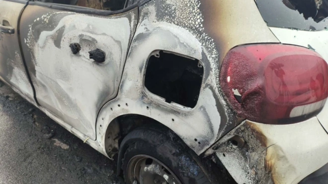 Από τη ρίψη μολότοφ ένα αυτοκίνητο καταστράφηκε ολοσχερώς ενώ άλλα δύο αυτοκίνητα έχουν υποστεί σοβαρές φθορές
