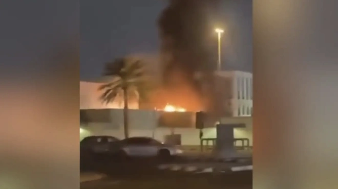 Πυκνός καπνός κάλυψε τον ουρανό στην περιοχή που βρίσκεται το αμερικανικό προξενείο στο Ντουμπάι, με τις φλόγες να υψώνονται, δημιουργώντας σκηνικό καταστροφής.