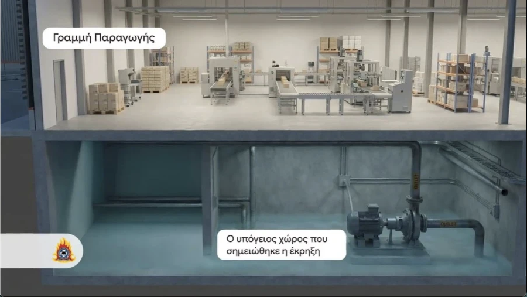 Όσα ανακοίνωσε ο διοικητής της ΕΣΚΕΔΙΚ της Πυροσβεστικής, συνάδουν και με τη φωτογραφία ντοκουμέντο από το υπόγειο του εργοστασίου, που δείχνει σωλήνες μεταφοράς προπανίου, να έχουν υποστεί διάτρηση.