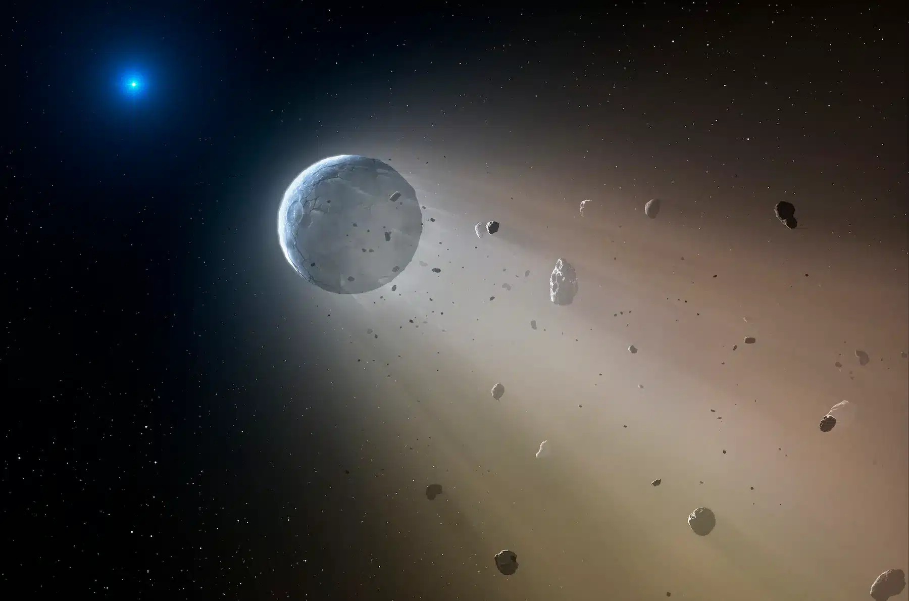 Το διαστημικό τηλεσκόπιο Hubble εντόπισε έναν λευκό νάνο –το λείψανο ενός άστρου παρόμοιου με τον Ήλιο– να καταπίνει ένα παγωμένο αντικείμενο με μέγεθος συγκρίσιμο με τον Πλούτωνα.
