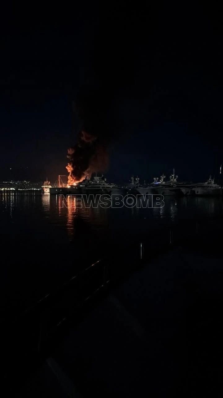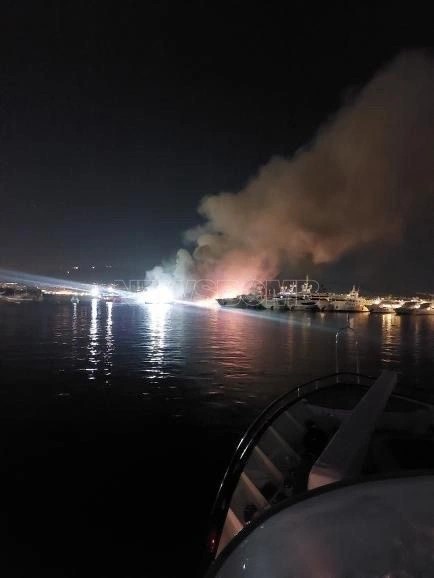 Η φωτιά έγινε αντιληπτή γύρω στις 4 τα ξημερώματα, προκαλώντας μεγάλη κινητοποίηση της Πυροσβεστικής και του Λιμενικού Σώματος.