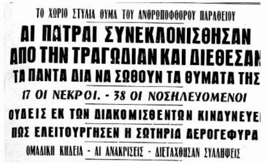 Ο γιατρός Αν. Σιδέρης που έφτασε πρώτος στη Στύλια και αντίκρισε το φρικτό θέαμα είπε στον Τύπο: