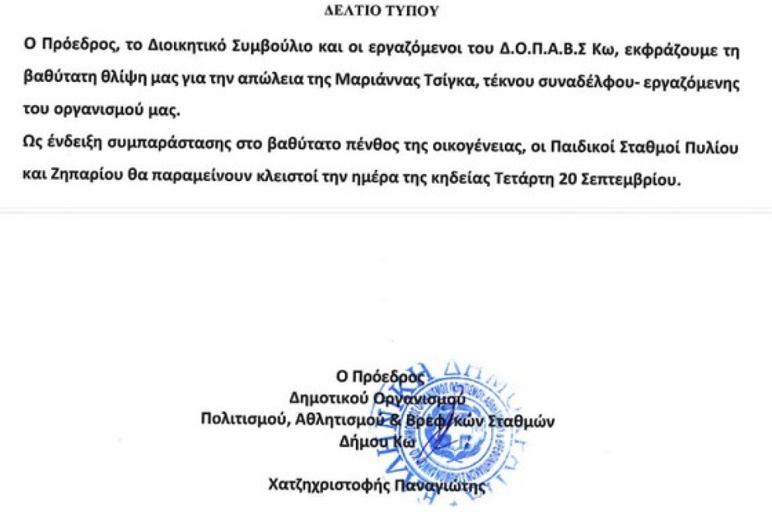 «Η σκέψη όλων μας είναι με την οικογένεια και τους φίλους της Μαρίας-Άννας. Ειλικρινή συλλυπητήρια», έγραψε ο κ. Στυλιανίδης