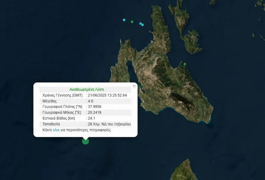Σεισμός μεγέθους 4,6 Ρίχτερ σημειώθηκε το απόγευμα του Σαββάτου (21/6), στην Κεφαλονιά.