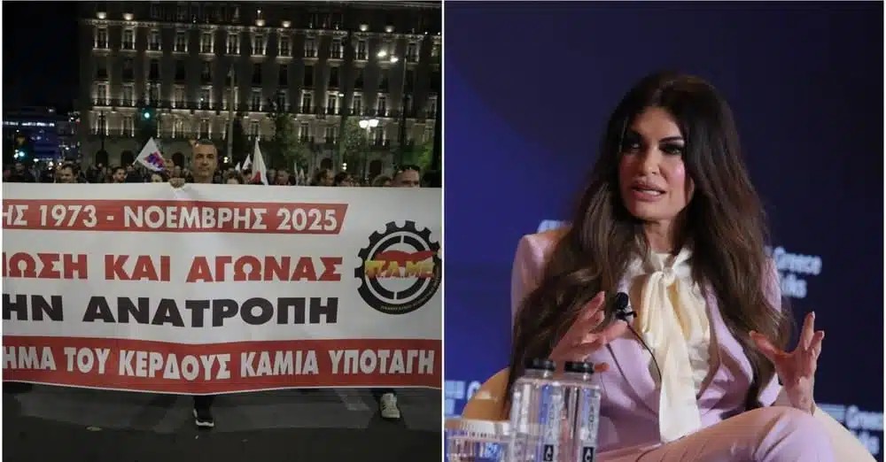 Στην πορεία για την επέτειο του Πολυτεχνείου, που άλλωστε καταλήγει στην πρεσβεία των ΗΠΑ, συνδικαλιστές του ΠΑΜΕ, έβαλαν στο στόχαστρό τους την Κίμπερλι Γκίλφοϊλ.