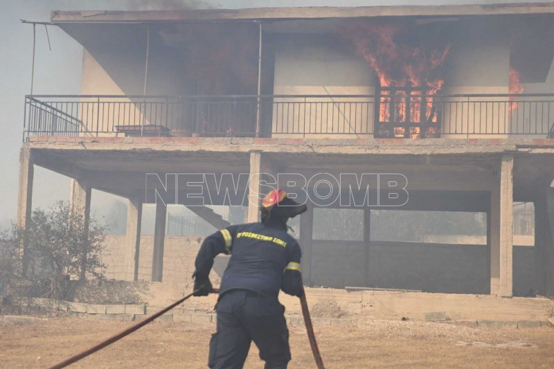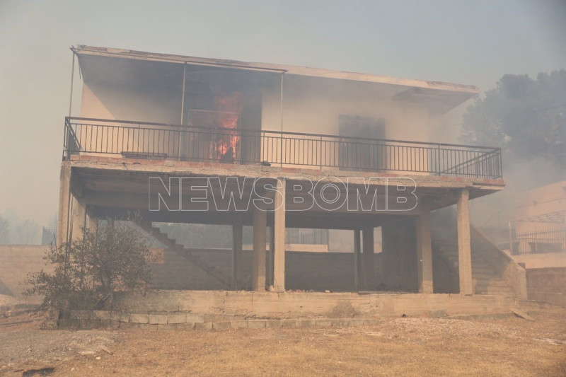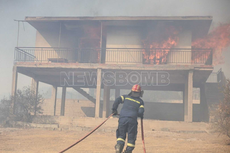 Σπίτια παραδίδονται στις φλόγες και κόποι μιας ζωής γίνονται στάχτη μέσα σε λίγα λεπτά, καθώς το πύρινο μέτωπο στην Κερατέα μαίνεται ανεξέλεγκτο παρά τις υπεράνθρωπες προσπάθειες των Πυροσβεστών.