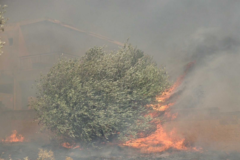 Σύμφωνα με πληροφορίες η φωτιά καίει μια ανάσα μακριά από τις αυλές των σπιτιών.