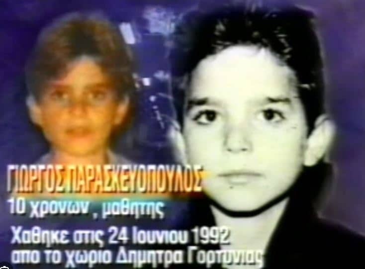 Ήταν 10 χρόνων όταν ο Γιώργος Παρασκευόπουλος χάθηκε στο βουνό του χωριού Δήμητρα Γορτυνίας στις 24 Ιουνίου του 1992. Ακόμη μία υπόθεση που συγκλόνισε το πανελλήνιο και όσα χρόνια και αν περάσουν δεν ξεχνιέται.