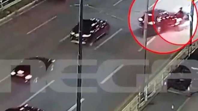 Η σύγκρουση ήταν σφοδρή και ο 40χρονος εκσφενδονίστηκε μαζί με τη μοτοσικλέτα πάνω σε κολώνα φωτισμού, ενώ στη συνέχεια σύρθηκε για αρκετά μέτρα στον παράδρομο.