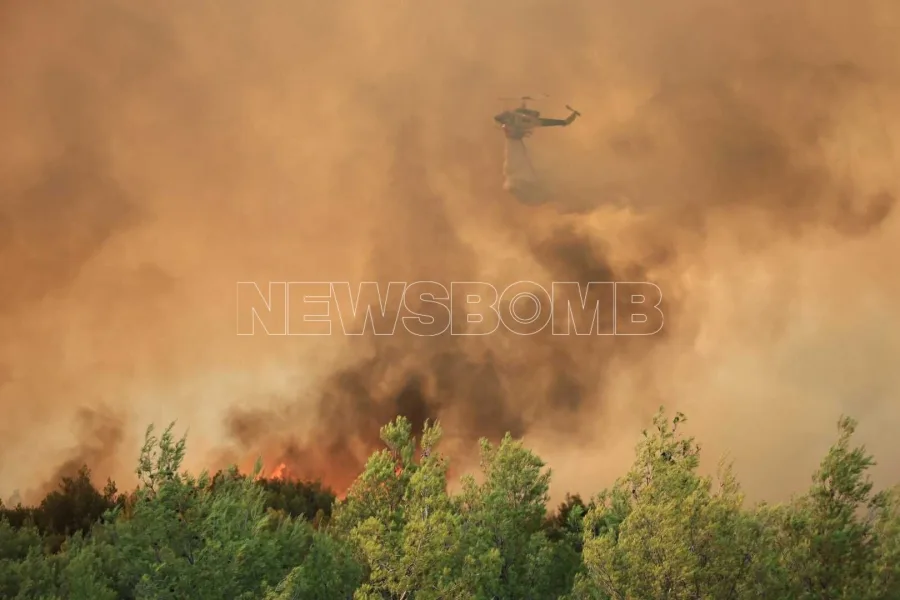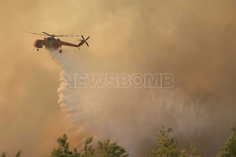 Μάχη δίνουν τα εναέρια μέσα με ρίψεις νερού
