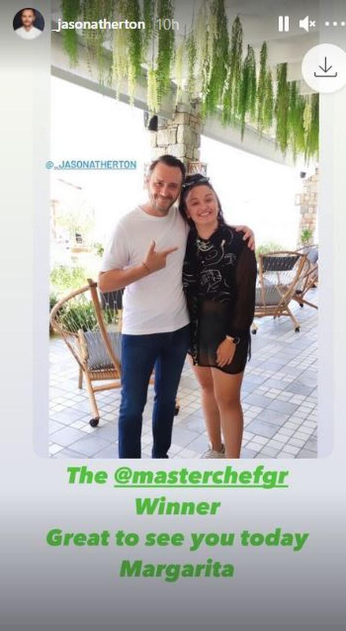 Η Μαργαρίτα έκανε σταθερό post και story με τον διάσημο σεφ, και εκείνος, από την πλευρά του, μοιράστηκε το story με τους fans του γράφοντας: «Η νικήτρια του masterChef! Χάρηκα πολύ που σε είδα Μαργαρίτα»!
