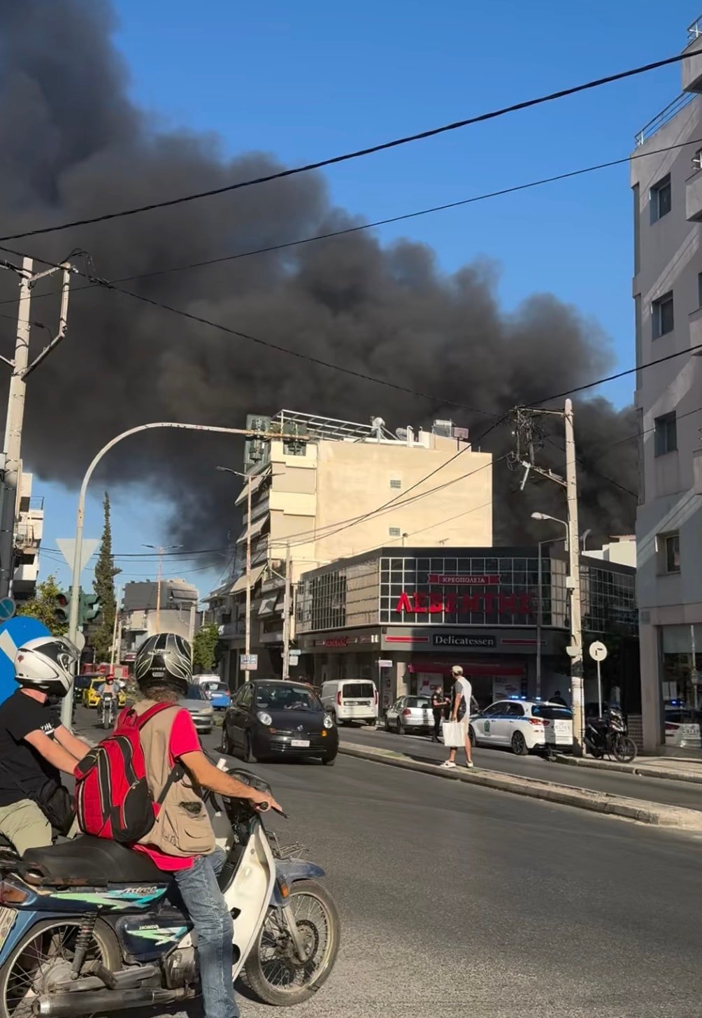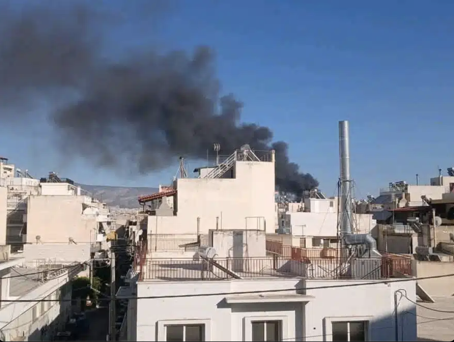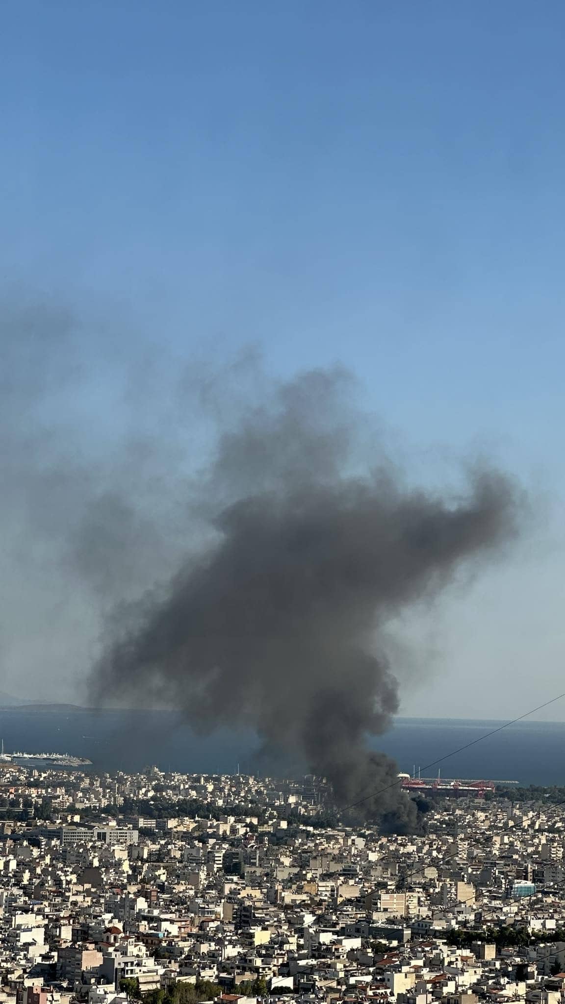Ένα μεγάλο πυκνό σύννεφο καπνού έχει υψωθεί στον ουρανό και φαίνεται από πολλές περιοχές της Αττικής