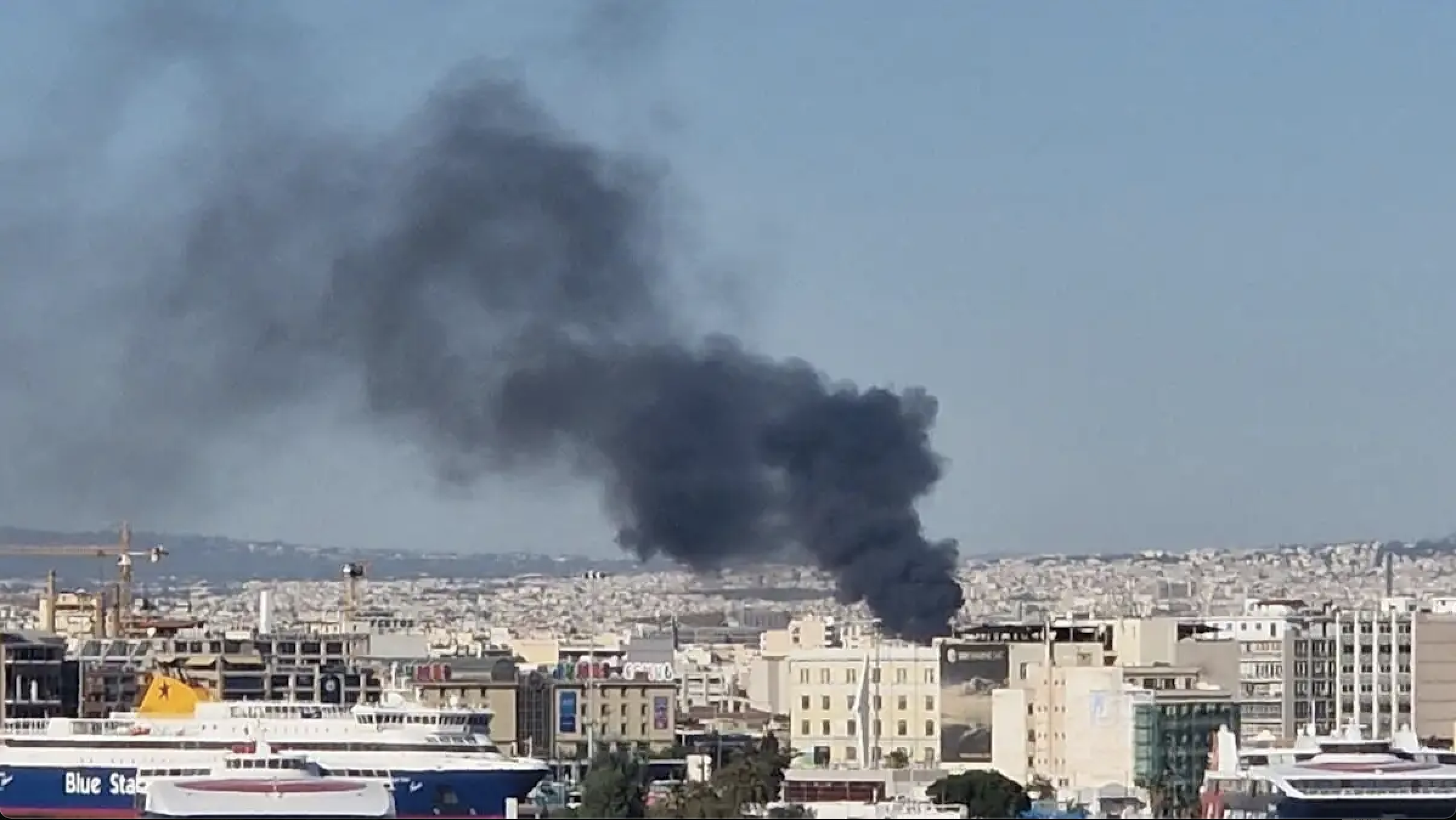 Ένα μεγάλο πυκνό σύννεφο καπνού έχει υψωθεί στον ουρανό και φαίνεται από πολλές περιοχές της Αττικής