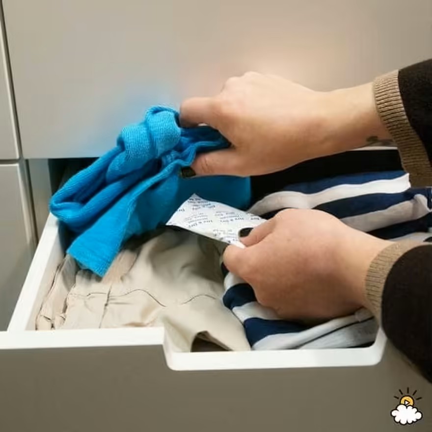 Απλά βάλτε ένα σακουλάκι με πυρίτιο ανάμεσα στα ρούχα ή στο πίσω μέρος του συρταριού για να κρατάτε τα συρτάρια σας φρέσκα, ειδικά σε εποχιακά ρούχα που μένουν στην ντουλάπα τον μισό χρόνο.
