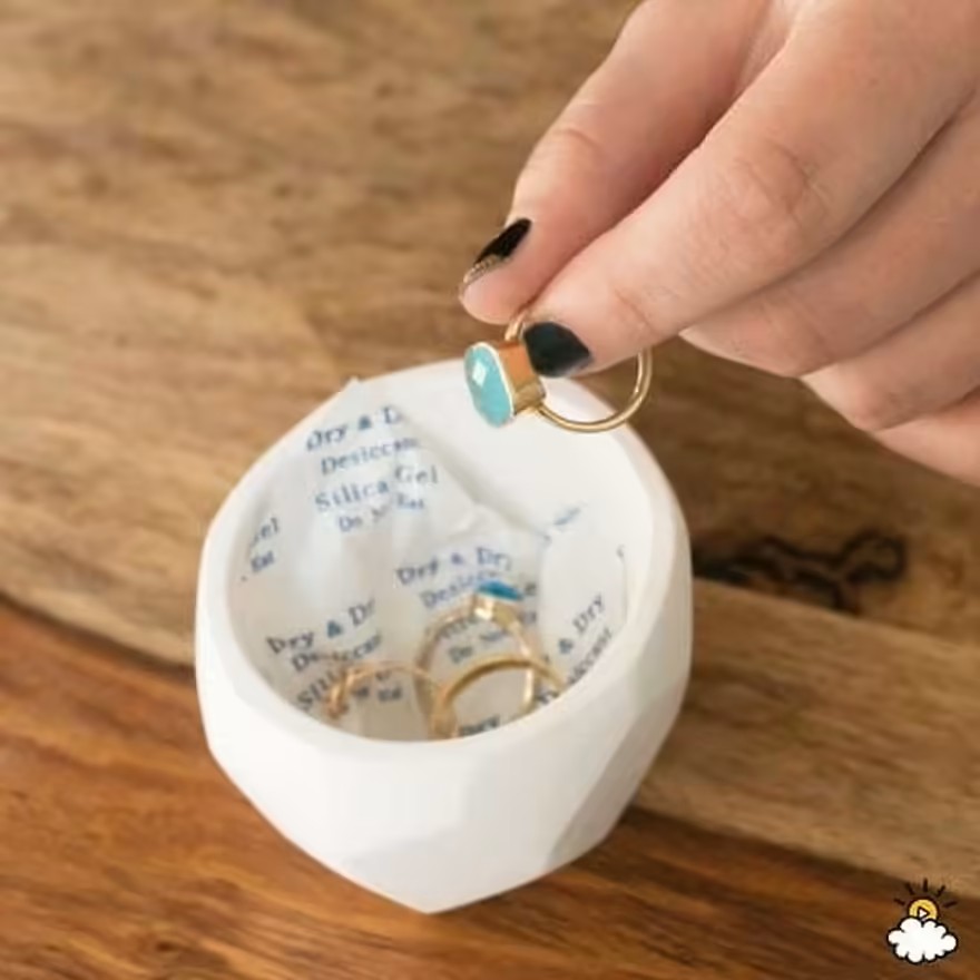 Κρατήστε ένα σακουλάκι γέλης πυριτίου στο κουτί με τα κοσμήματά σας για να κρατήσετε μακριά την υγρασία.