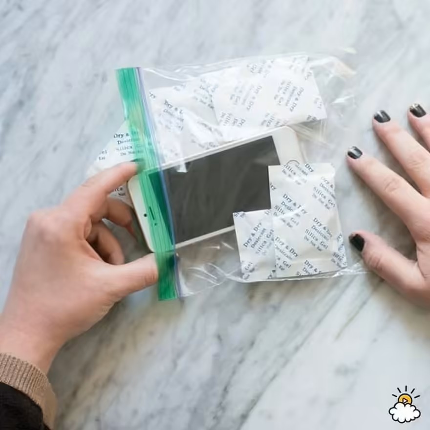 Για να στεγνώσετε τα μικρά ανοίγματα και εξαρτήματα, καλύψτε το κινητό με πακέτα γέλης πυριτίου και από τις δυο πλευρές.