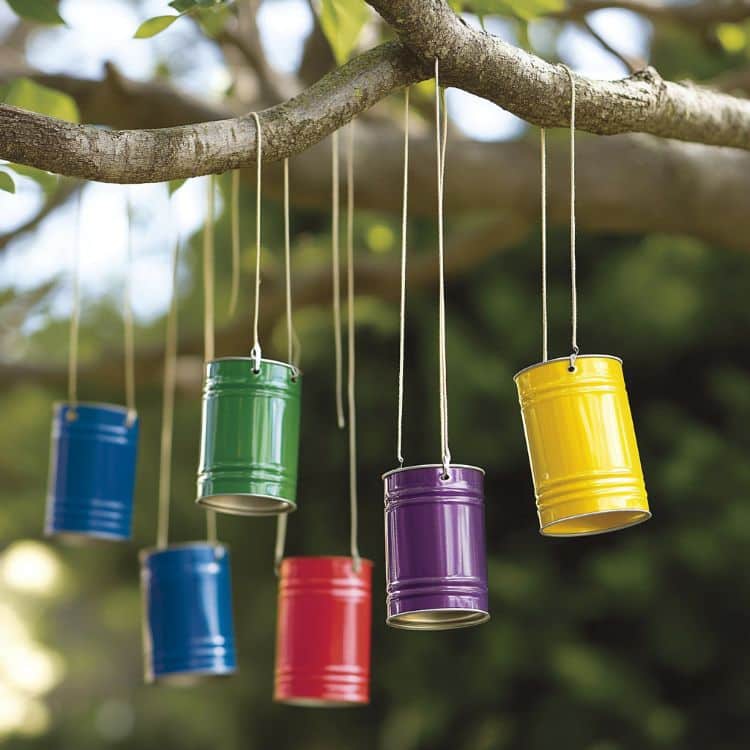 7. Κατασκευή κρεμαστού διακοσμητικού που παράγει ήχο από τενεκεδένια κουτιά για εξωτερικούς χώρους