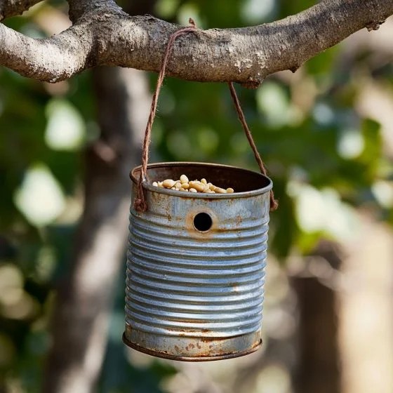 5. Κατασκευή μιας μοναδικής ταΐστρας πουλιών από τενεκεδένιο κουτί για την αυλή σας