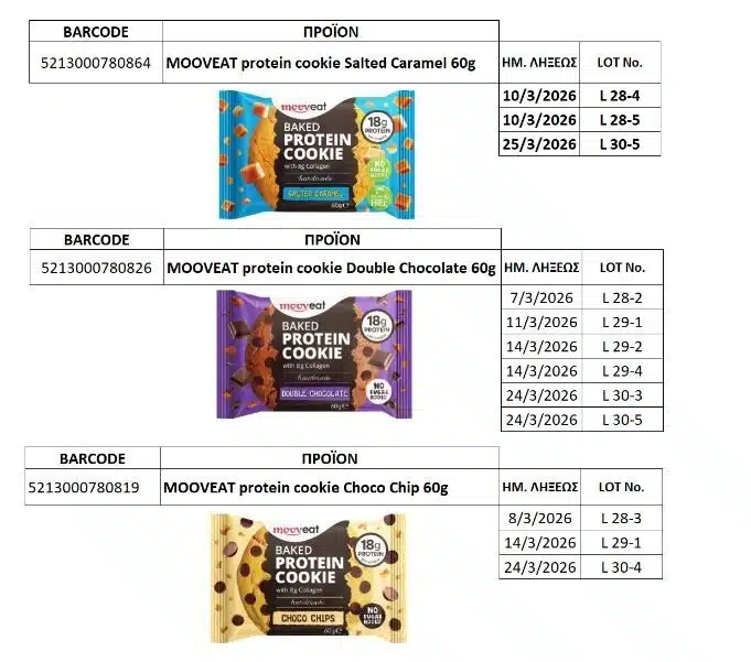 Η ανάκληση που έγινε σε συνεργασία με τον ΕΦΕΤ, περιλαμβάνει τα εξής προϊόντα: