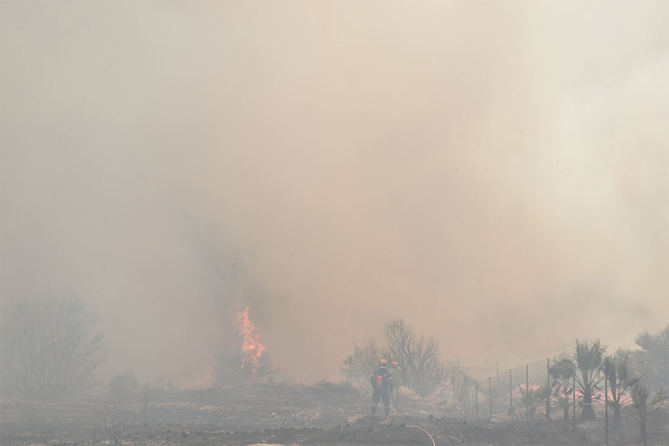 Ο αντιδήμαρχος Λαυρεωτικής, Αθανάσιος Μακροδημήτρης, παρέθεσε στην ΕΡΤ ότι έχουν καταστραφεί κάποιες κατοικίες στην Πλάκα και το Μαρκάτι. Επιπλέον, αναφέρθηκε στη γειτονική στρατιωτική βάση όπου διατηρούνται αμυντικά συστήματα Patriot και έκανε έκκληση για ενίσχυση των εναέριων μέσων. Η Πυροσβεστική υποστηρίζεται από 78 πυροσβέστες, 26 οχήματα, 2 ομάδες πεζοπόρων τμημάτων, καθώς και 8 αεροσκάφη και 4 ελικόπτερα, καθώς προσπαθεί αδιάκοπα να αντιμετωπίσει την πυρκαγιά.