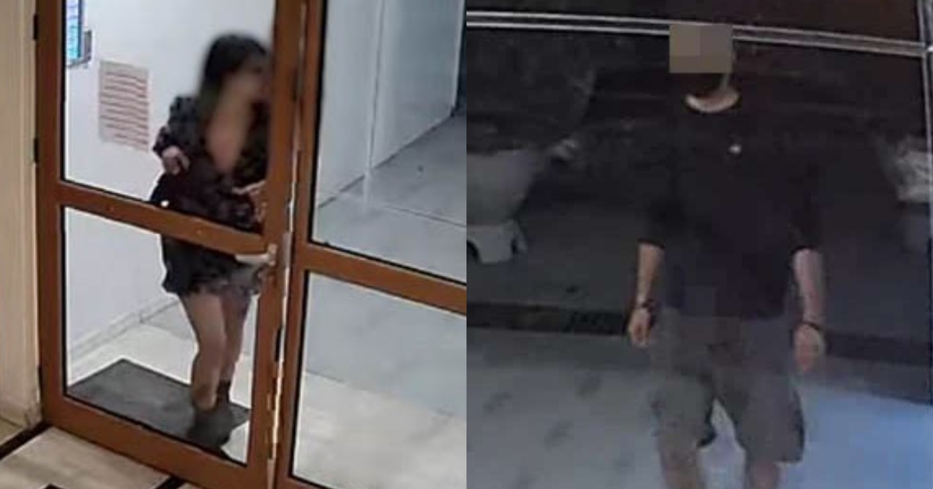 Στο βίντεο που ανέβασε η νεαρή γυναίκα διακρίνεται αρχικά η ίδια να φτάνει στην είσοδο της πολυκατοικίας και να χτυπά το κουδούνι, κρατώντας τα κλειδιά στο χέρι. Αφού μπαίνει μέσα και κλείνει την πόρτα – όπως αποτυπώνεται από την κάμερα του κλειστού κυκλώματος ασφαλείας – λίγα δευτερόλεπτα αργότερα πλησιάζει ο νεαρός άνδρας.