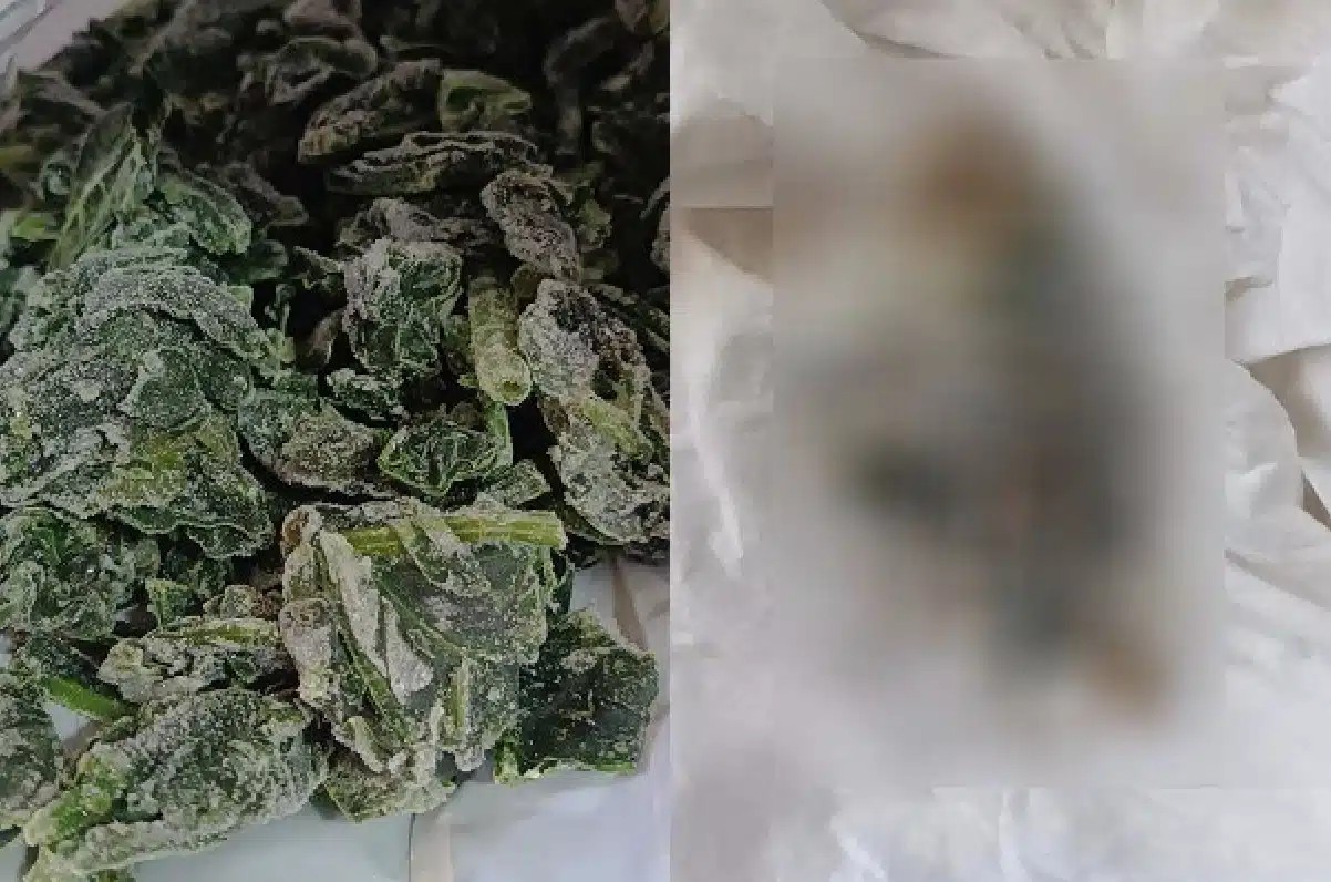 Ένα σοκαριστικό θέαμα αντίκρυσε καταναλωτής ανοίγοντας πρόσφατα μία συσκευασία με κατεψυγμένο σπανάκι, γνωστής μάρκας που αγόρασε από σούπερ μάρκετ της περιοχής του.