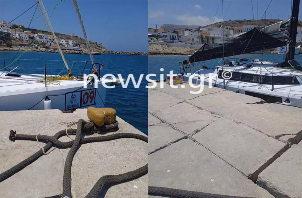 Τότε, όπως αναφέρουν οι πληροφορίες, εν μέσω θυελλωδών ανέμων στην περιοχή έπεσε στη θάλασσα, όπου τη χτύπησε κάτω από το σκάφος ένα «πόδι», που έχουν τα ιστιοπλοϊκά στη μέση.