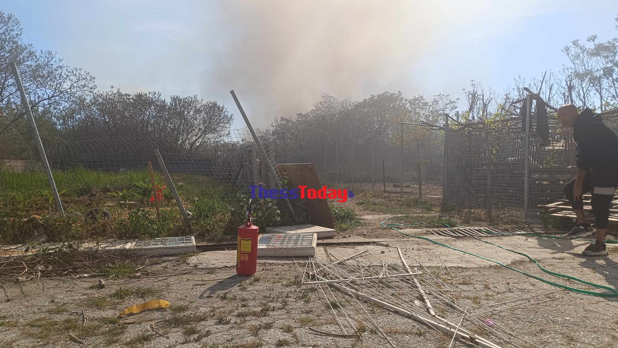Η φωτιά ξέσπασε πλησίον της Παλιάς Εθνικής Οδού και το μέτωπο έκαιγε ξερά χόρτα κοντά σε βαγόνι του ΟΣΕ, ενώ λίγα μέτρα μακριά στεγάζονται επιχειρήσεις, καθώς και μονάδες με οικόσιτα ζώα.