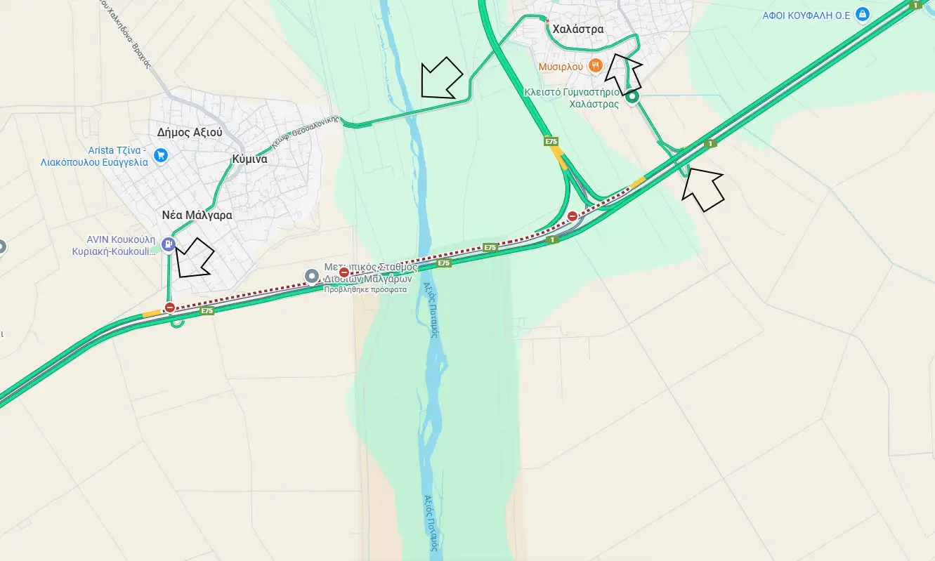 Στα Μάλγαρα τα οχήματα κινούνται μέσω Χαλάστρας και του χωριού των Μαλγάρων.