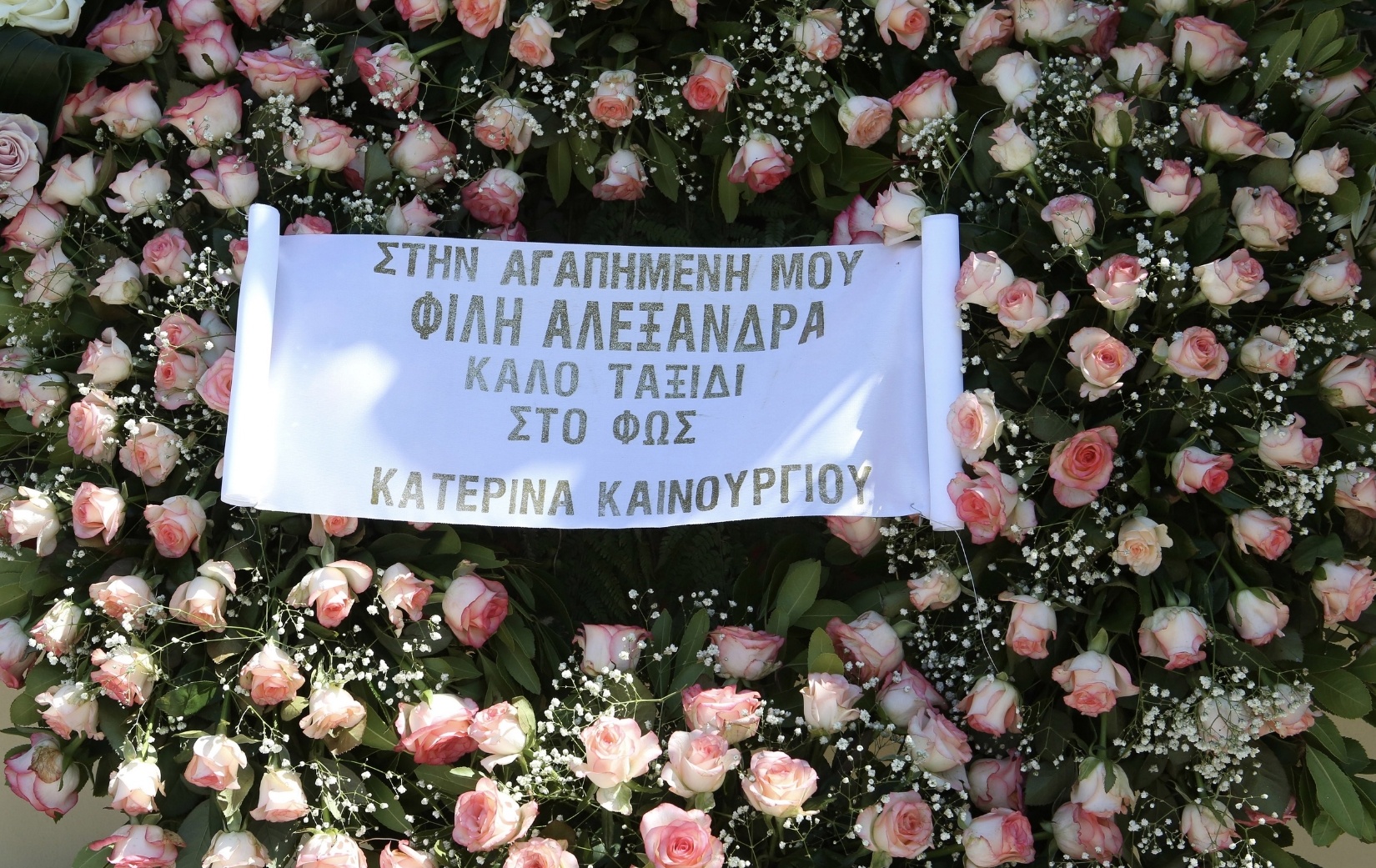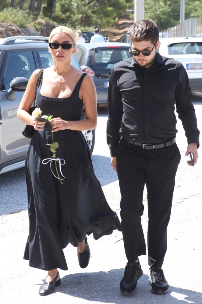 Ντυμένη στα μαύρα, φορώντας μαύρα γυαλιά και κρατώντας ένα λευκό τριαντάφυλλο και ζωγραφισμένη τη θλίψη στο πρόσωπό της η παρουσιάστρια αποχαιρέτησε τη φίλη της, Αλεξάνδρα.