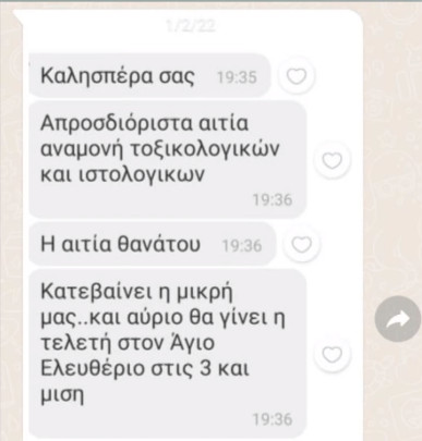 Σε αυτά τα μηνύματα, η Ρούλα Πισπιρίγκου φαίνεται να μιλά με πολύ μεγάλη ψυχρότητα και απάθεια για ιστολογικές και τοξικολογικές εξετάσεις στην κόρη της, καθώς και τι μπορούν αυτές να αναδείξουν.