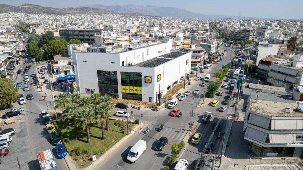 Ένα εντυπωσιακό κατάστημα Lidl έκανε την εμφάνισή του στα δυτικά προάστια της Αθήνας στις 5 Σεπτεμβρίου, διαθέτοντας αρκετά ταμεία και πολλές θέσεις στάθμευσης. Το νέο αυτό κατάστημα δεν έχει καμία σχέση με την παραδοσιακή εικόνα που έχουμε για τα Lidl.