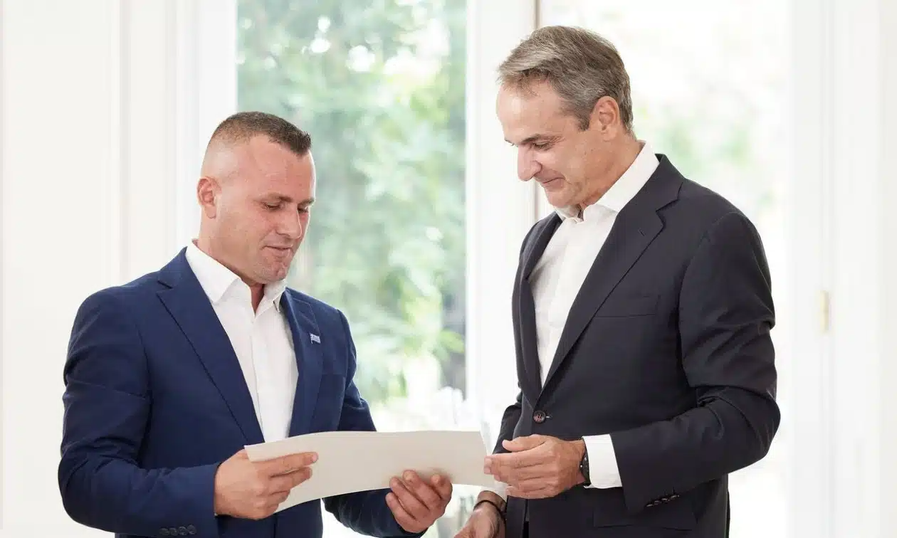 Ο Γκόγκα Λεντιάν έδωσε τον όρκο του Έλληνα πολίτη ενώπιον του πρωθυπουργού Κυριάκου Μητσοτάκη, παρουσία του υπουργού Εσωτερικών Θοδωρή Λιβάνιου και του γενικού γραμματέα Ιθαγένειας Δημήτρη Κάρναβου.