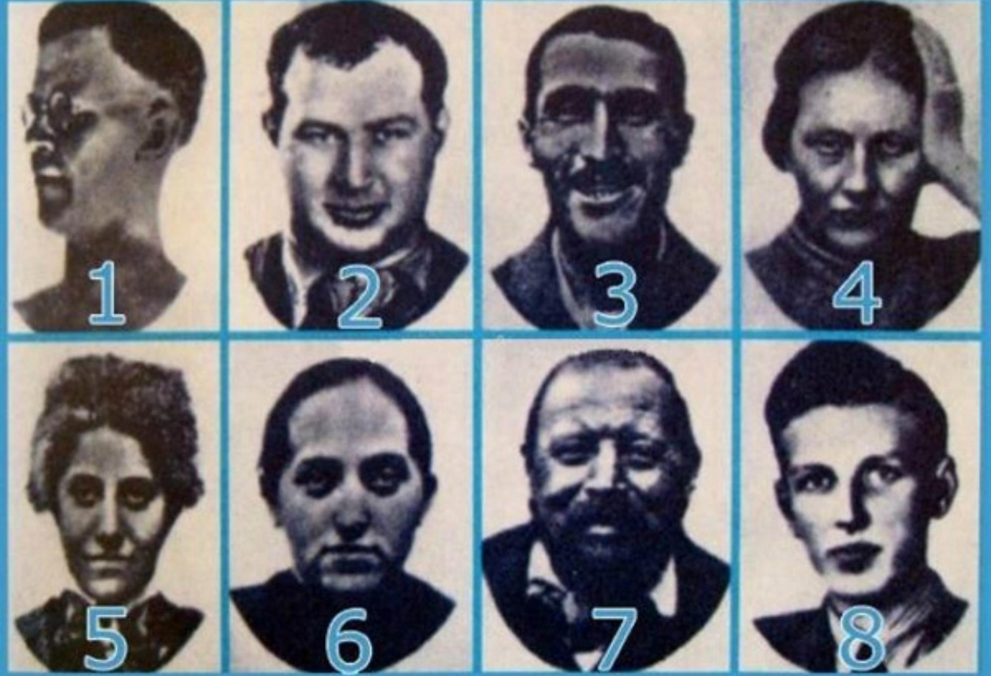 Οδηγίες: Κοιτάξτε τα πορτρέτα αυτών των οκτώ ανθρώπων και επιλέξτε εκείνο που ποτέ δεν θα θέλατε να συναντήσετε το βράδυ στο σκοτάδι, επειδή η εμφάνισή του σας προκαλεί φόβο. Στη συνέχεια διαβάστε την ερμηνεία που αντιστοιχεί στον αριθμό του πορτρέτου που επιλέξατε.