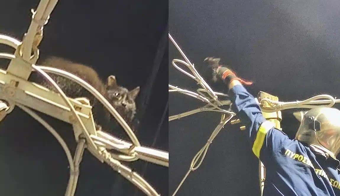 Περαστικοί που άκουσαν τα νιαουρίσματά του ειδοποίησαν άμεσα την πυροσβεστική, με αποτέλεσμα στο σημείο να φτάσει όχημα της Πυροσβεστικής.