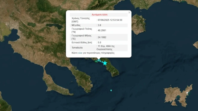 Ο σεισμός, κατά την ίδια αυτόματη ανάλυση, είχε εστιακό βάθος 5 χλμ.