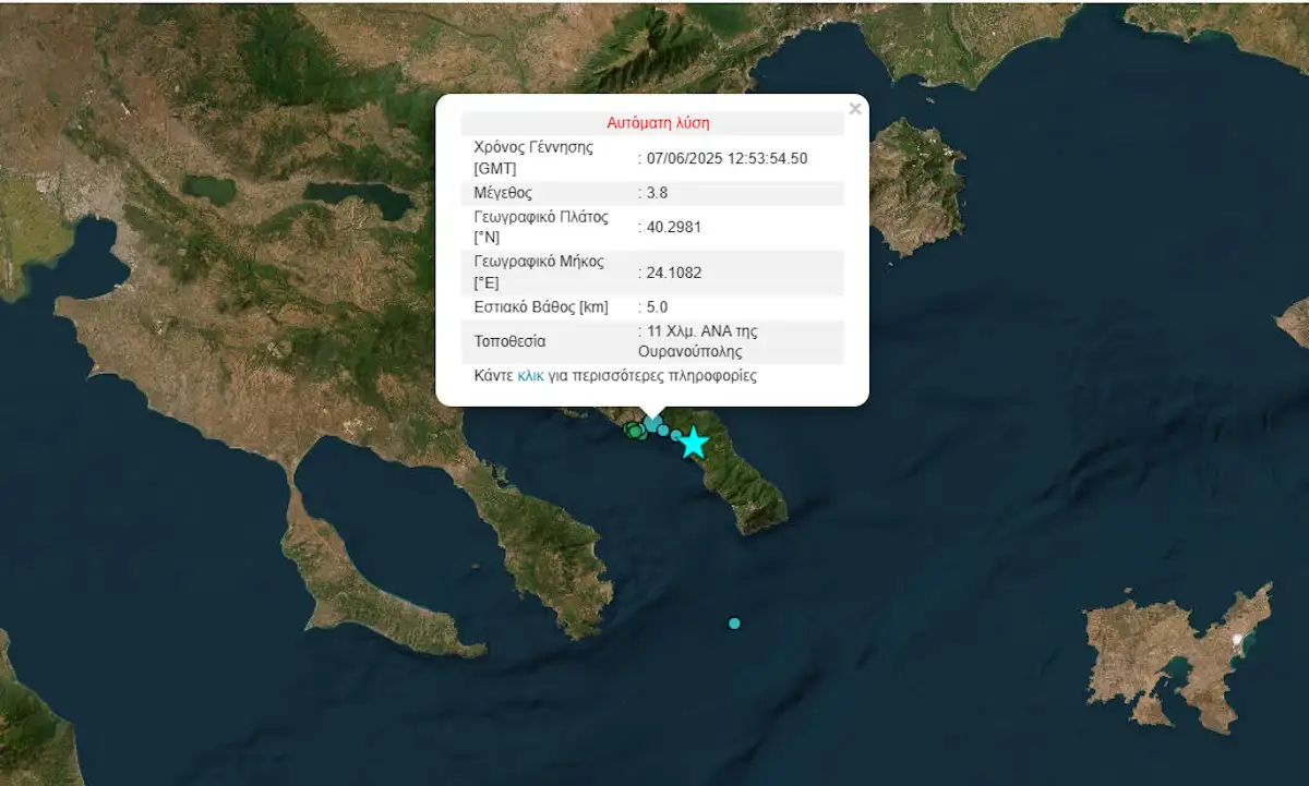 Σεισμός 5,3 Ρίχτερ στο Άγιο Όρος – Σε μικρή απόσταση από τις Καρυές το επίκεντρο