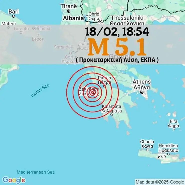 Ιδιαίτερα ισχυρός σεισμός 5,1 Ρίχτερ σημειώθηκε στην Κυλλήνη – Το εστιακό βάθος ήταν 5 χιλιόμετρα. Αναστάτωση το απόγευμα της Τρίτης (18/2) στην Κυλλήνη, λόγω ενός σεισμού με μέγεθος 5,1 Ρίχτερ. Ο σεισμός έγινε έντονα αισθητός στην περιοχή, με το επίκεντρό του να εντοπίζεται 7 χιλιόμετρα βορειοδυτικά της Κυλλήνης.