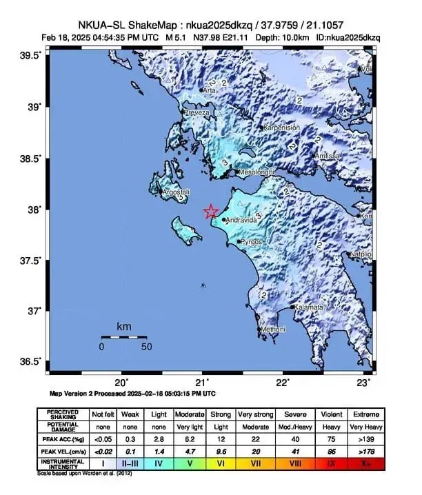 Εικόνες που απεικονίζουν την ένταση και τη γεωγραφική κατανομή της σεισμικής δόνησης