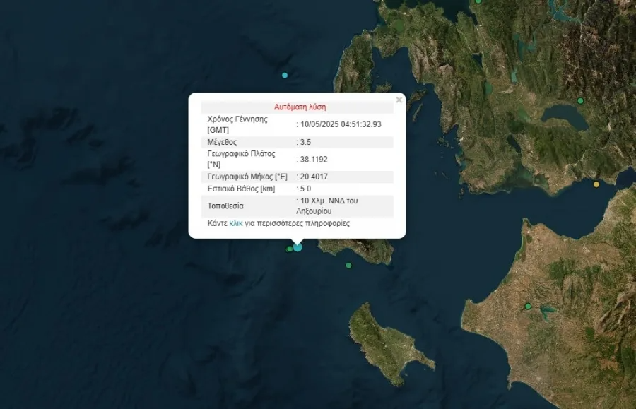 Πρόκειται για σεισμό της τάξεως των 3,5 βαθμών της κλίμακας Ρίχτερ, με εστιακό βάθος 5χλμ. Όλα συνέβησαν στις 6:51 το πρωί 10 χλμ ΝΝΔ του Ληξουρίου στην Κεφαλονιά.