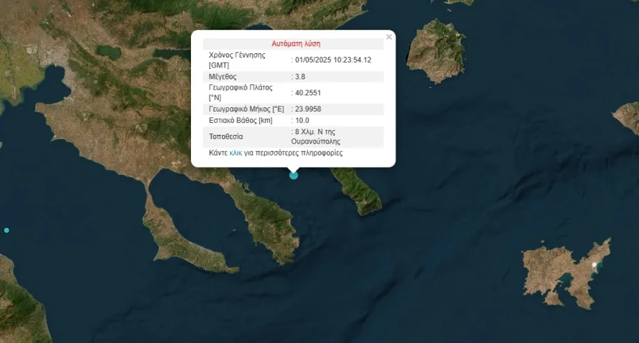 Σεισμός σημειώθηκε το μεσημέρι της Πρωτομαγιάς κοντά στο Άγιο Όρος.