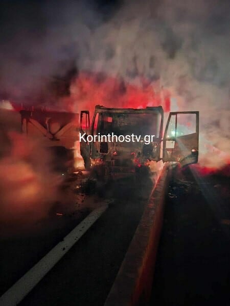Όπως αναφέρει το korinthostv.gr, από τη σφοδρή σύγκρουση ξέσπασε φωτιά. Οχήματα της Πυροσβεστικής έσπευσαν άμεσα για την κατάσβεση της πυρκαγιάς, ωστόσο η νταλίκα κάηκε ολοσχερώς. Η κυκλοφορία στο σημείο διακόπηκε για λόγους ασφαλείας και έγινε εκτροπή της κυκλοφορίας.