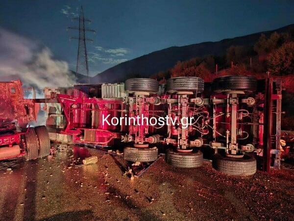 Τροχαίο ατύχημα σημειώθηκε λίγα λεπτά μετά τα μεσάνυχτα, στην Εθνική οδό Πατρών – Κορίνθου, στο ρεύμα προς Κόρινθο, όταν νταλίκα που μετέφερε ξύλα, υπό αδιευκρίνιστες συνθήκες, εξετράπη της πορείας της και κατέληξε στο διαχωριστικό διάζωμα.