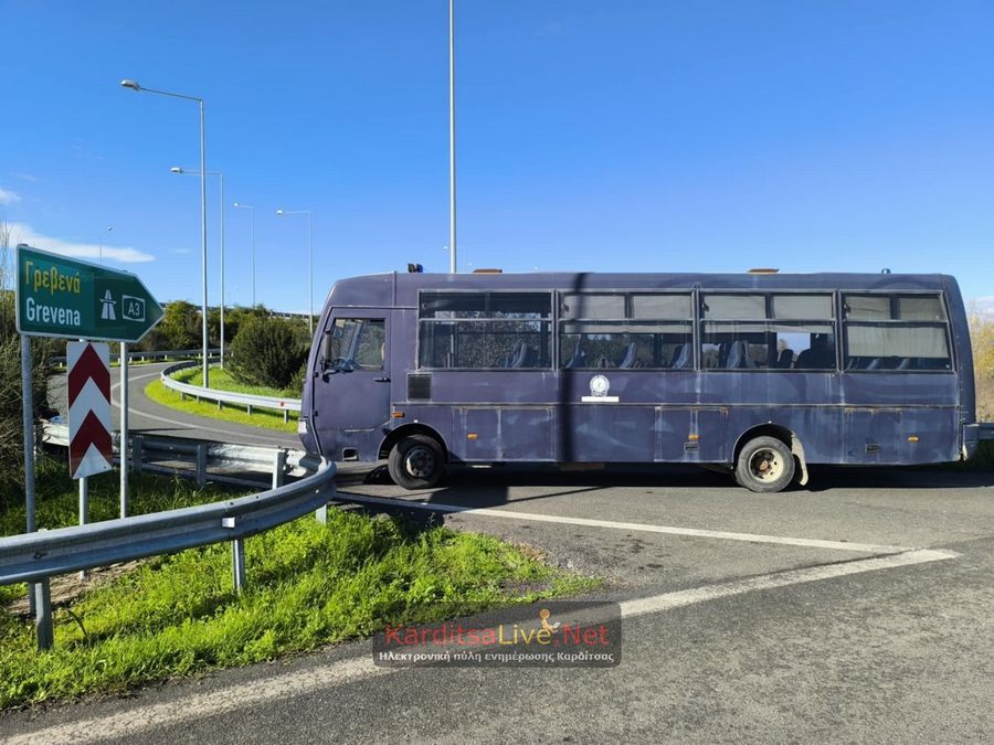 Κλούβες των ΜΑΤ είχαν κλείσει τις εισόδους και εξόδους του ανισόπεδου κόμβου του αυτοκινητόδρομου Ε-65, προκειμένου να αποτρέψουν την πρόσβαση στους διαδηλωτές.