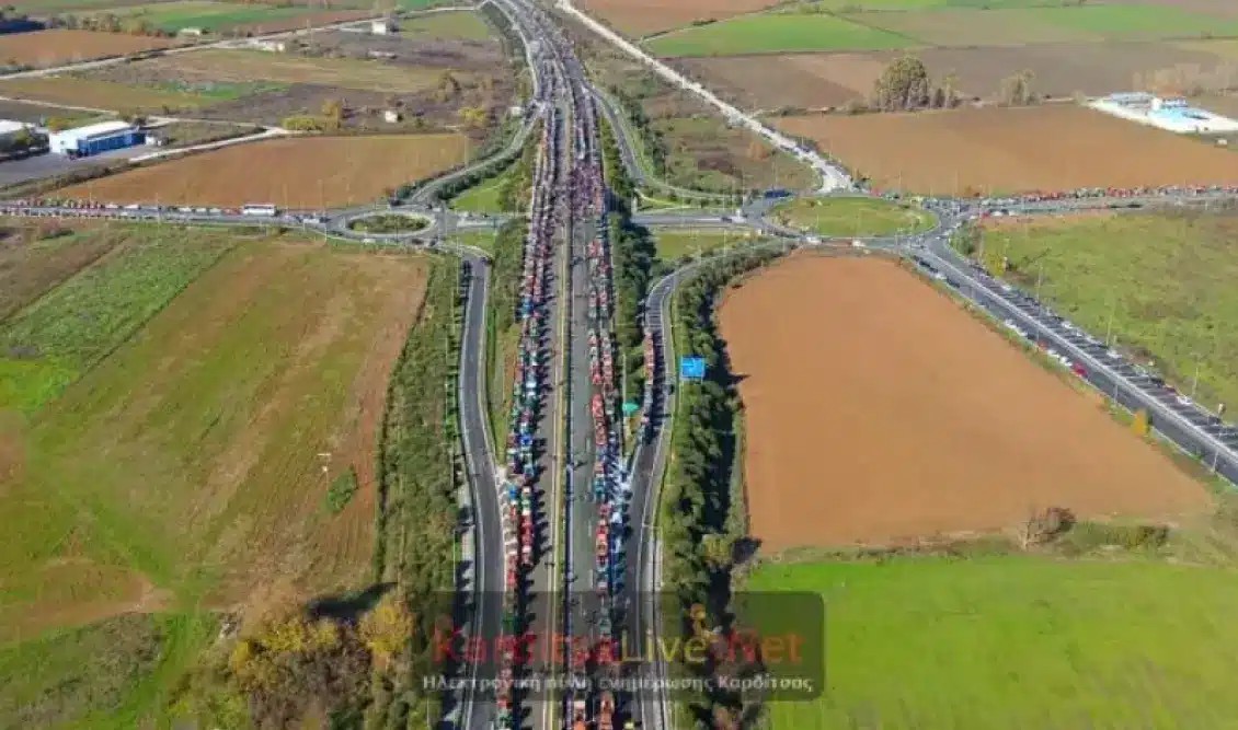Εκατοντάδες τρακτέρ βρίσκονται πλέον στον αυτοκινητόδρομο Ε65 στη μεγαλύτερη κινητοποίηση των τελευταίων ετών.