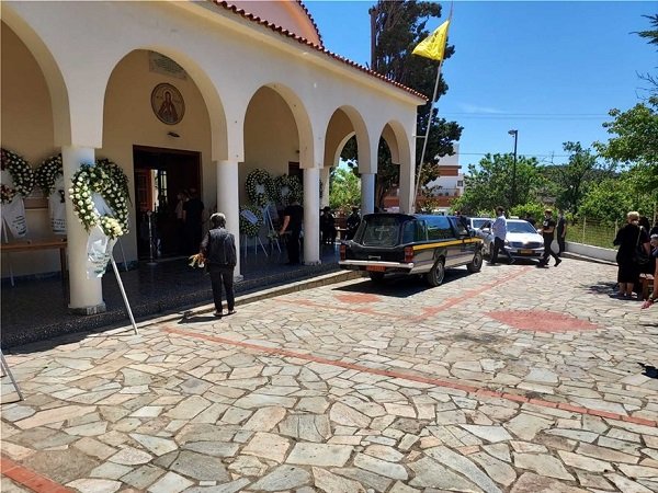 Η εξόδιος ακολουθία έλαβε χώρα στις 3 το μεσημέρι στην εκκλησία της Αγίας Παρασκευής, στο Πατητήρι της Αλοννήσου. Τραγικές φιγούρες ο σύζυγός της που κρατάει αγκαλιά το μωρό και η μάνα της Καρολάιν που δεν μπορούσε να πιστέψει πως το κοριτσάκι της έφυγε τόσο γρήγορα και άδικα από την ζωή.